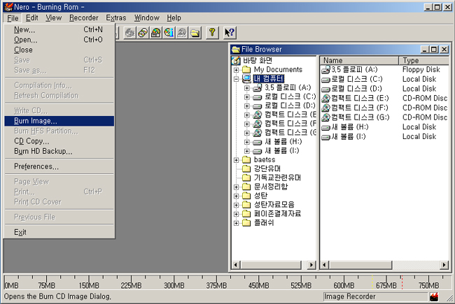 네로를 이용하여 iso(CD이미지)파일 CD로 굽기