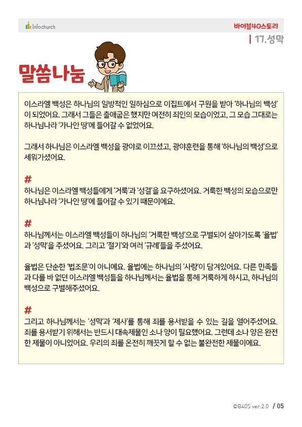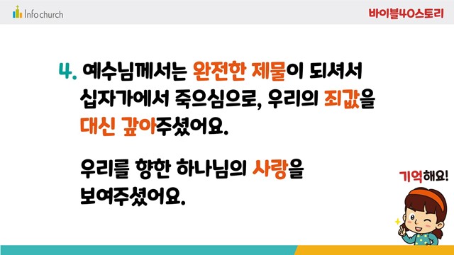 바이블40스토리는 매주 1편씩 업데이트 됩니다.