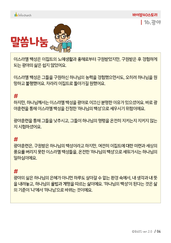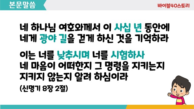 바이블40스토리는 매주 1편씩 업데이트 됩니다.