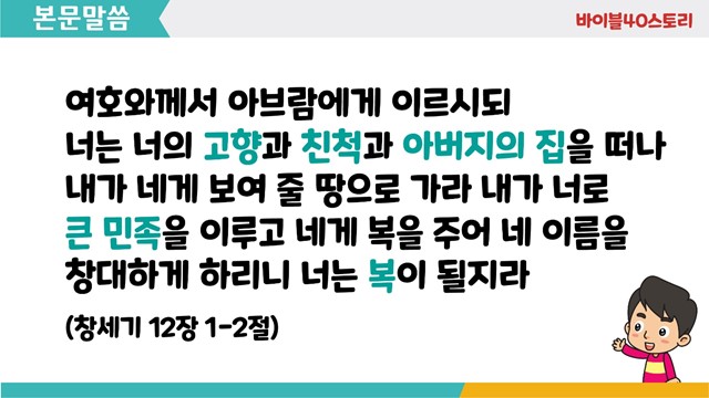 | 성경 | 창세기 12장1절-2절 |