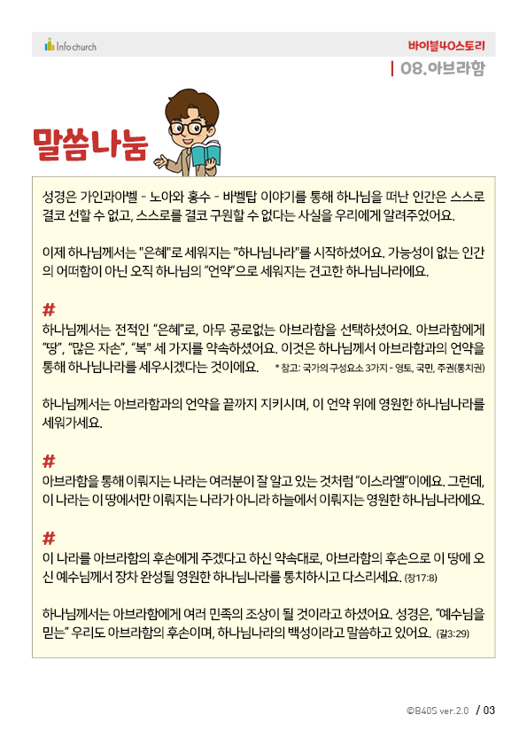 바이블40스토리는 매주 1편씩 업데이트 됩니다.