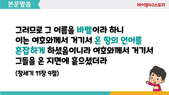 바벨탑 이야기 이후에, 우리의 구원을 위해 멋지게 일하시는 하나님의 이야기를 아이들과 함께 기대해 보세요~!!