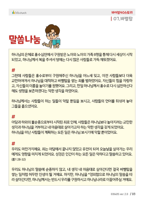 바이블40스토리는 매주 1편씩 업데이트 됩니다.