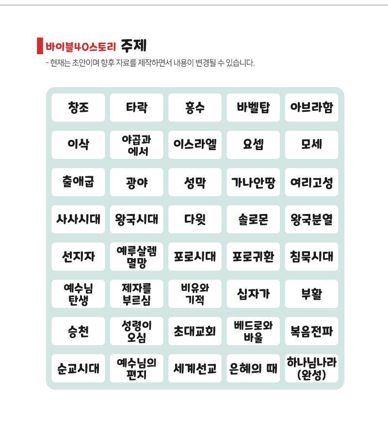 바이블40스토리는 매주 1편씩 업데이트 됩니다.