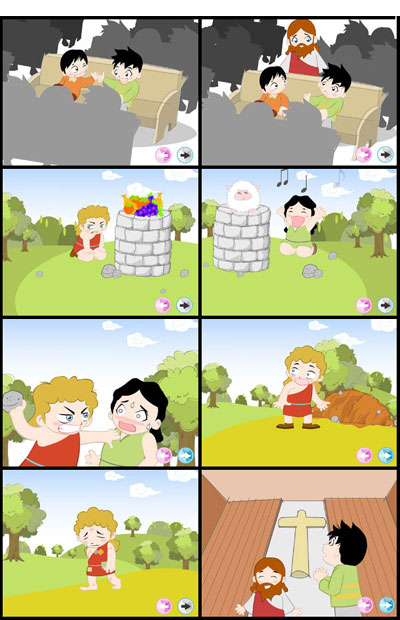 한 장면씩 넘어가면서 선생님께서 구연동화로 설교를 하시면 됩니다.