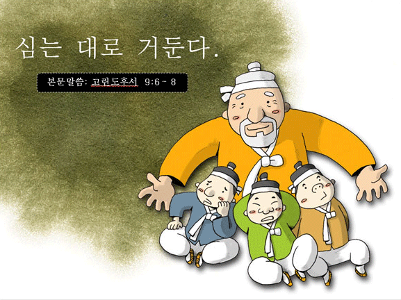 (고린도후서 9:6 ~ 8) 심는 대로 거둔다