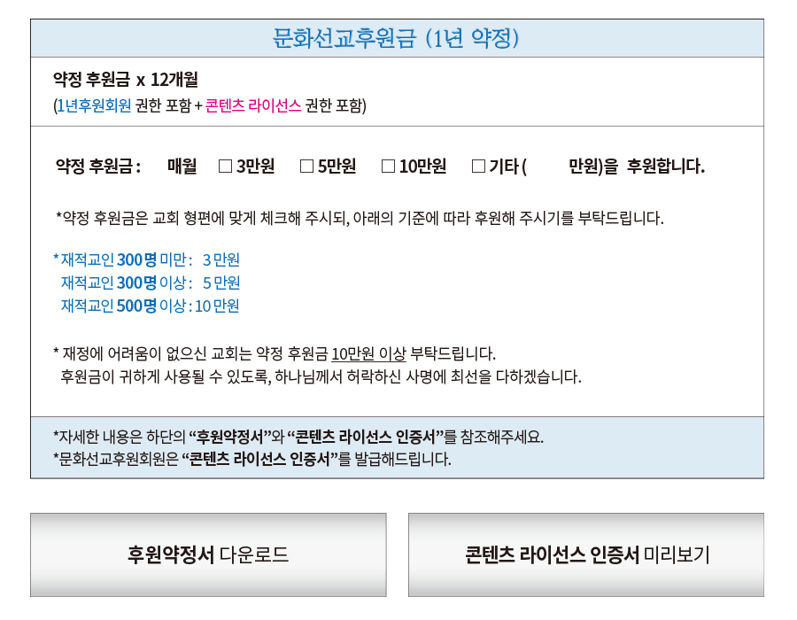 - 문화선교후원회원 : 현장예배 사용○ / 온라인예배 사용○ |