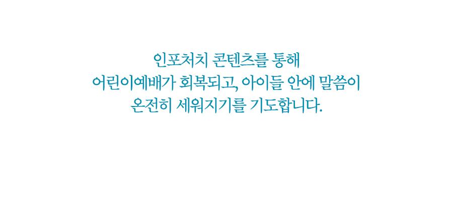 인포처치가 코로나 시대(post corona)에 “어린이 설교 콘텐츠”의 한 부분을 감당하는 선교단체로서, 사명을 잘 감당할 수 있도록
