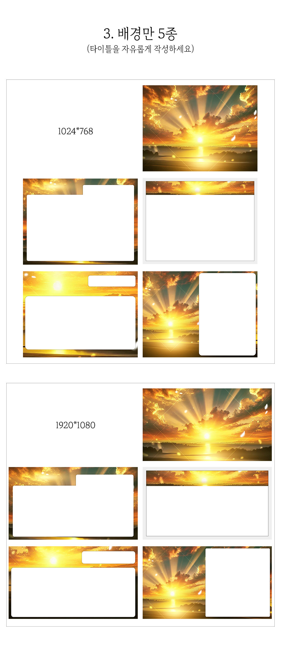 1920*1080 / 1024*768 두 가지 사이즈가 포함되어 있습니다.