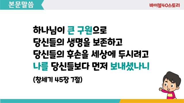 | 성경 | 창세기 45장7절 |